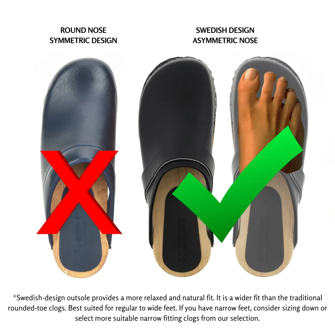 Please note: As these clogs are handmade, slight variations in leather and wood grain may occur, making each pair unique.